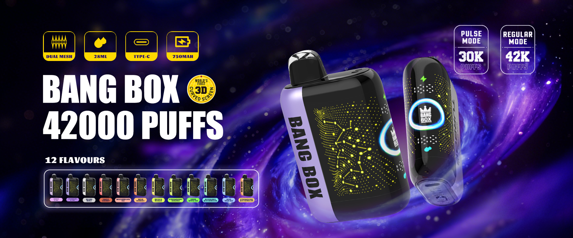BANG BOX 50000 Puffs Double Flavor Disposable Vape-Strawberry Kiwi & Double Grape
