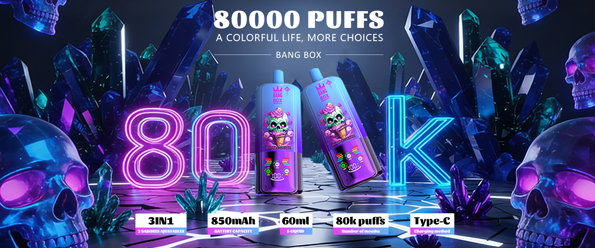BANG BOX 80000 Puffs 3 in1 Flavor Disposable Vape - Strawberry Banana & Raspberry Watermelon & Love666